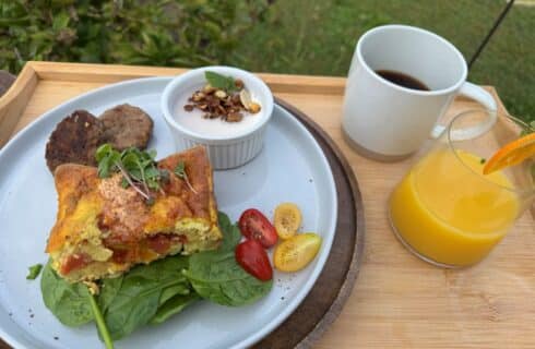 Wake up, smell the coffee, and enjoy guest favorites such as our Lemon Blueberry Cornmeal Pancakes or Yeasted Belgian Waffles! Guests also rave about our savory dishes like Baked Eggs with Havarti Cheese and Dill, or our infamous Tomato and White Cheddar Quiche. Want to see a few recipes? Join us on Facebook, and keep up with our News from the Inn section where we post recipes. Our breakfasts are balanced with the right amount of sweet and savory. Don’t worry if you have special dietary needs. Our chef worked for Whole Foods for many years and is able to accommodate Vegetarian, Vegan, Gluten-free, Lactose-intolerant, or whatever food sensitivities you have. We can make it work!